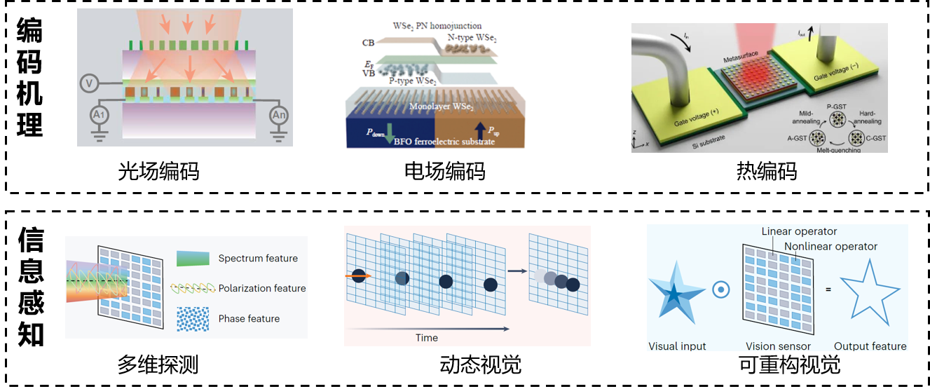 光电编码感知可以实现例如光电响应优化,多维探测,感算一体等多种功能。我们使用微纳光学结构、电、热等多种方式调控传统体材料或低维材料的光电响应,实现光谱探测、可重构视觉等新型感知,获得国家自然科学基金、浙江省基金重大项目等资助。
